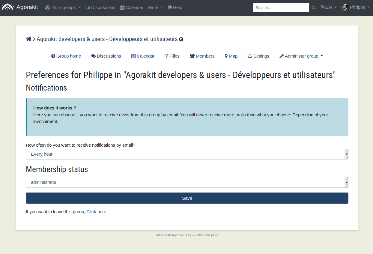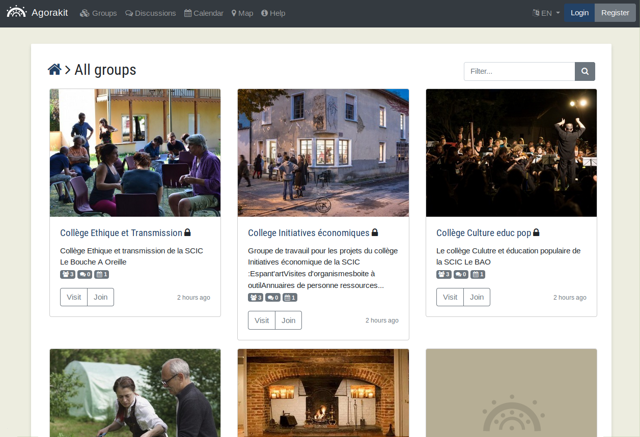 Agorakit is released under the AGPL licence. It is open source and can be freely extended and used by others.